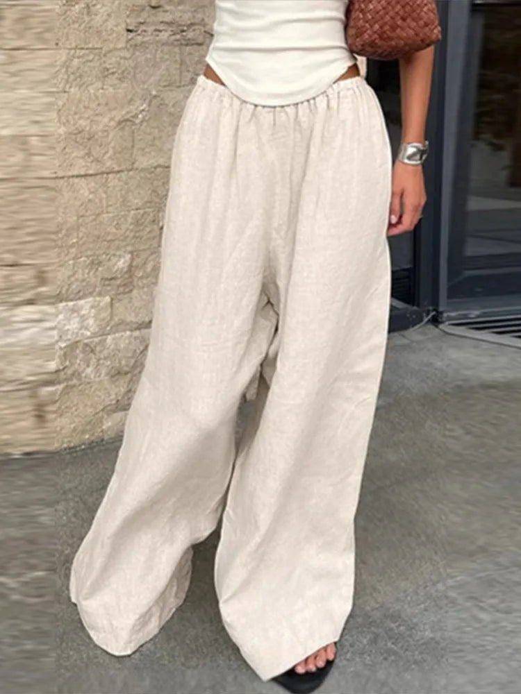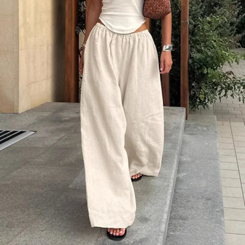 Idéal pour un look estival décontracté, associez ce pantalon large à un top simple ou une chemise légère. Sa taille élastique et sa coupe fluide le rendent parfait pour la détente, les vacances ou un style urbain relâché. Portez-le avec des sandales plates ou des sneakers.
